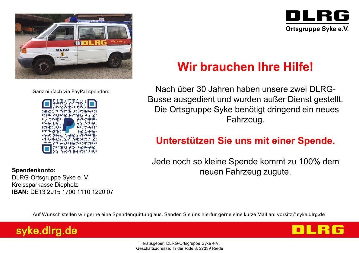 Jetzt Spenden: https://www.paypal.com/paypalme/dlrgsyke